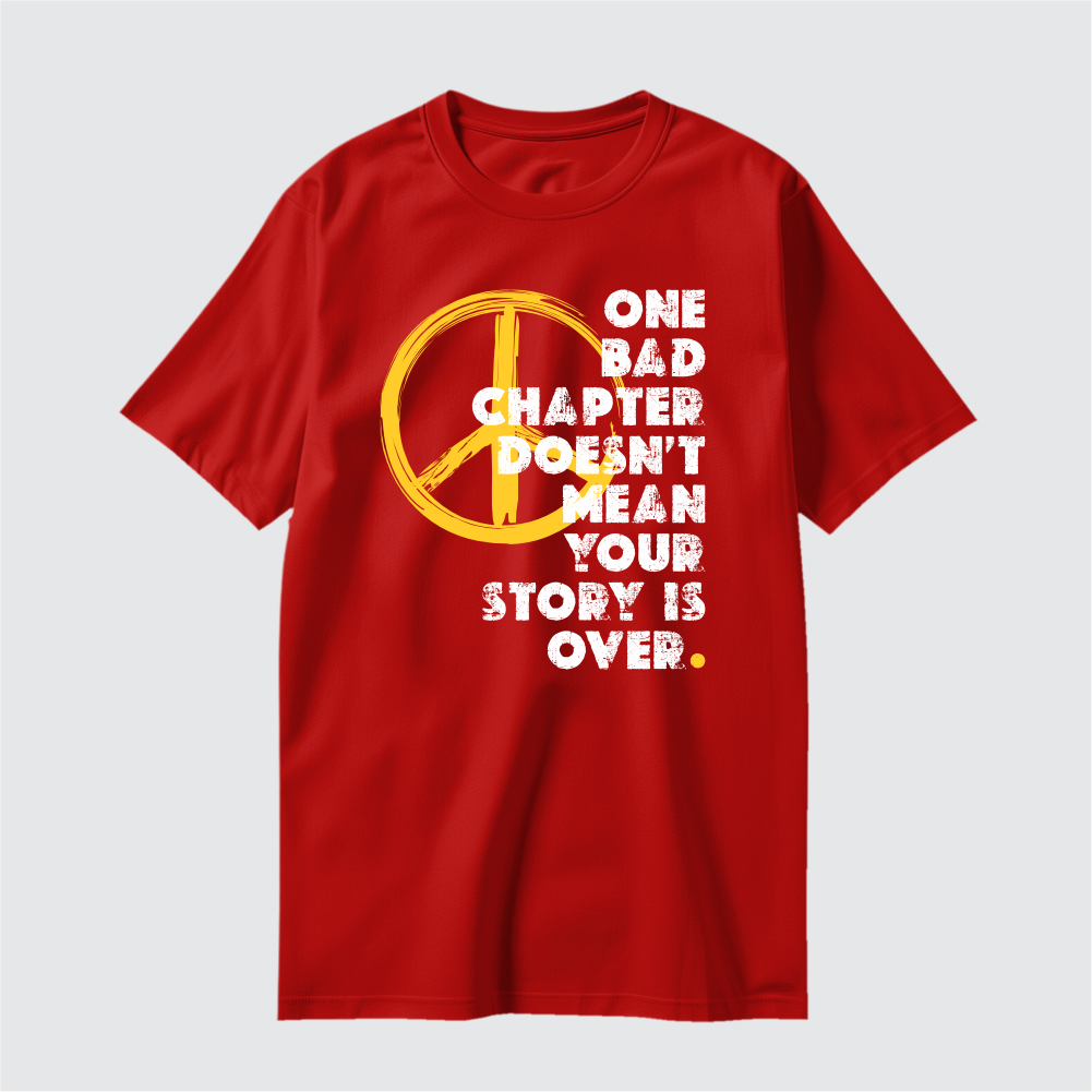 An inspiring quote-driven design with a bold peace symbol, reminding you that setbacks don’t define your journey and your story isn’t over yet.